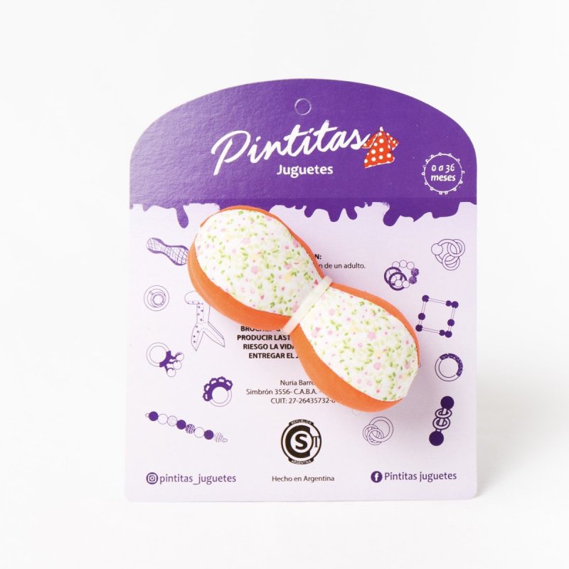 Un juguete ideal para los bebés pequeños que  toman  objetos. Es una fuente de aprendizaje: atractiva  a la vista por los contrastes de colores. Liviana  ideal para que las pequeñas manos puedan manipularlo y no se cansen. Las ondulaciones de su forma cilíndrica presentan un reto para la prensión y manipulación. Apta para poder chupar, morder, apretar, sacudir.